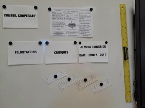 Afin d’harmoniser la vie de groupe en y associant davantage les élèves, la classe de 6ème 5 met en place un Conseil Coopératif qui n’est pas uniquement un lieu d'expression, mais avant tout une instance d'action où se décident des projets.