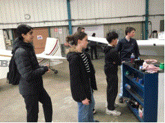 La première est de découvrir les différentes missions des mécaniciens aéronautiques de la société Aéroservice : mécanique, entoilage, menuiserie, etc…
