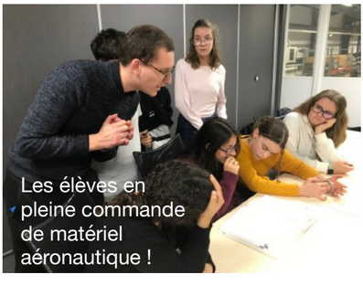 Les élèves ont pu avoir un aperçu des différents emplois possibles. Eve Goujon ingénieure d’application a expliqué son rôle d’interface entre les commanditaires de pièces aéronautiques avec leur cahier des charges et les ingénieurs, ouvriers, techniciens pour répondre aux exigences. Les élèves ont donc eu accès à différents aspects du métier de techniciens et d’ingénieurs. Le parcours d’Eve Goujon est intéressant à plus d’un titre pour nos élèves car ils peuvent faire le constat qu’une carrière professionnelle n’est pas forcément linéaire puisqu’elle est passée du monde de l’automobile au monde de l’aéronautique. La présence d’Eve comme celle de Yasmine (l’an dernier) montrent que les femmes ont elles aussi leur place pleine et entière dans le secteur industriel de l’aéronautique.